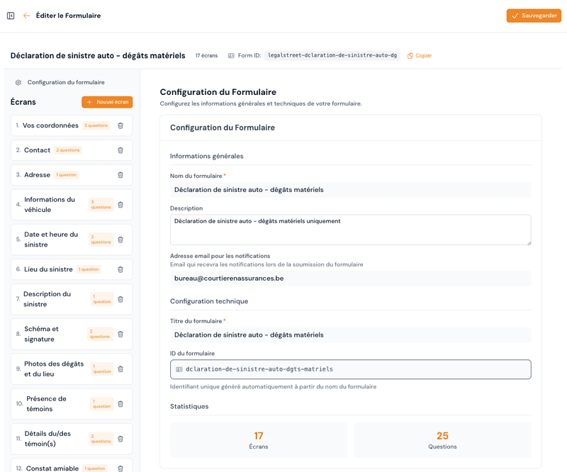 - « Crée un formulaire de déclaration de sinistre auto »